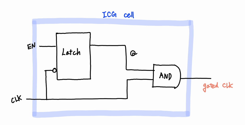 ICG cell은 아래의 그림과 같이 Latch와 AND gate로 이루어져 있습니다.